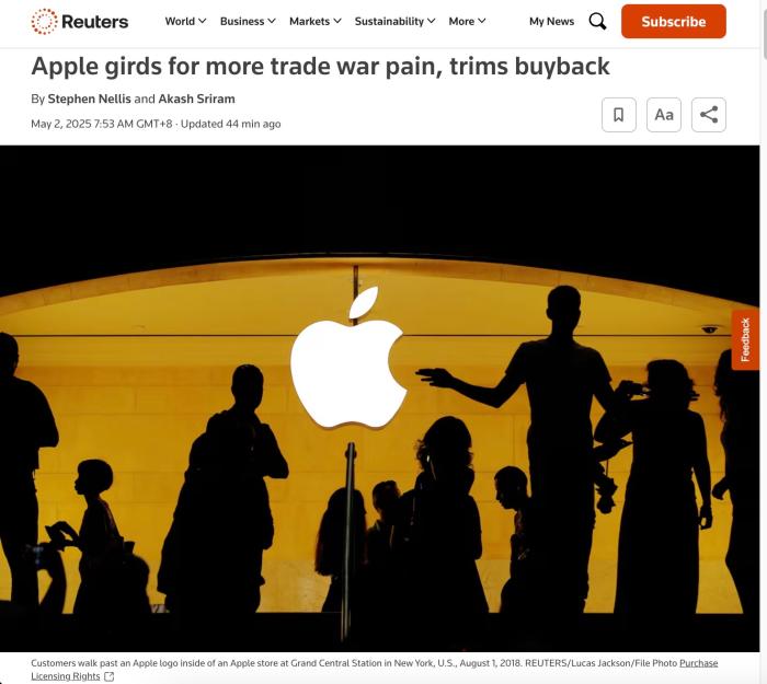 中新网5月2日电 据路透社等媒体报道招财猫配资,苹果公司CEO库克表示招财猫配资招财猫配资,美国政府关税或将拖累苹果公司二季度利润。