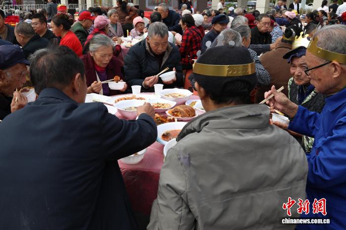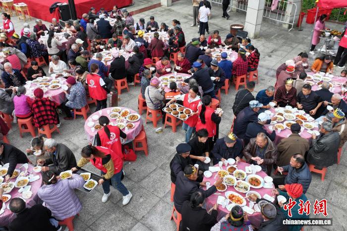 重庆忠县300余名老人吃“坝坝宴”喜迎重阳佳节